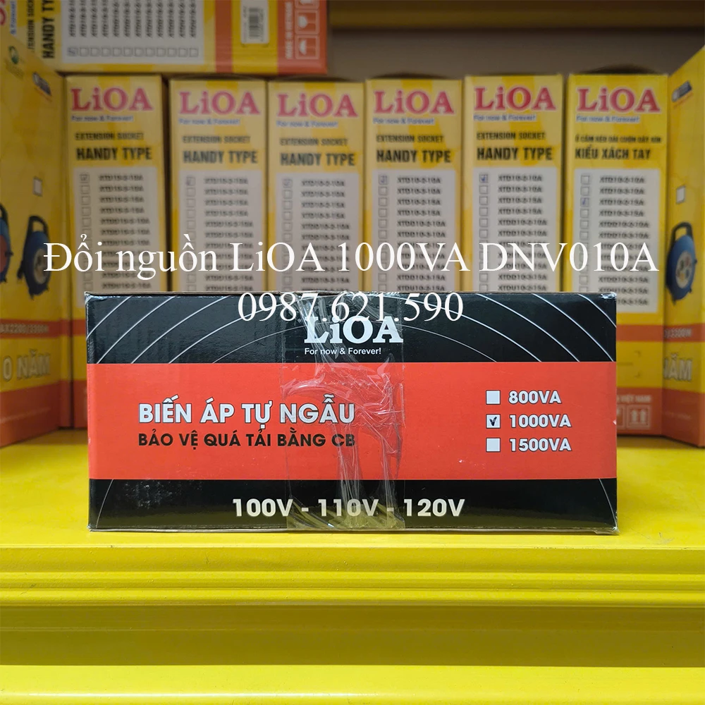 Bộ đổi nguồn LiOA 1000VA/N DNV010A có hình hộp chữ nhật, được dùng để đổi nguồn điện từ 220 sang 100V 110V 120V cho đồ dưới 800W.
