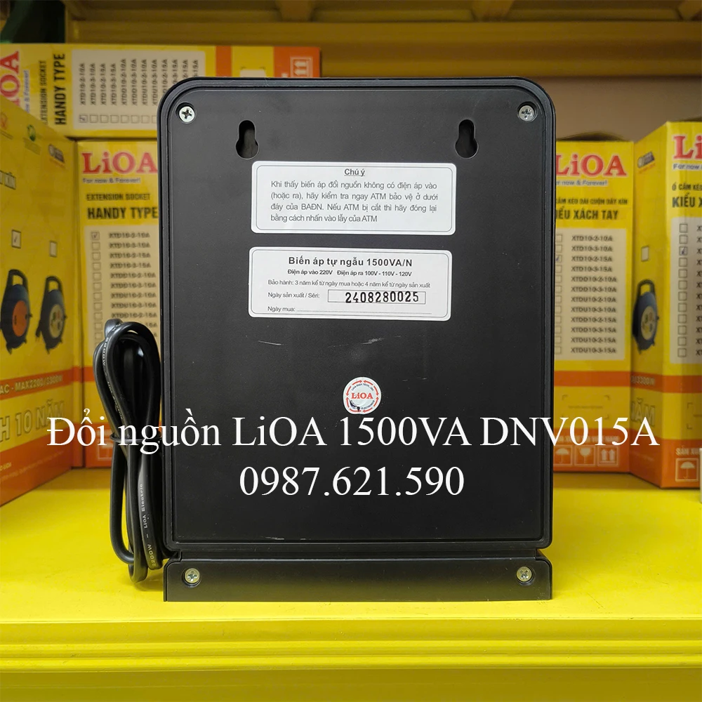 Bộ đổi nguồn LiOA 1500VA/N DNV015A là loại thế hệ mới, có 3 lỗ cắm đầu ra, quy cách kiểu dáng hình hộp chữ nhật hoàn toàn mới.